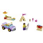 Užij si překrásný den na pláži se stavebnicí LEGO Juniors. Projížděj pobřeží ve stylovém kabrioletu, a až se ti povede najít tu nejkrásnější pláž, vydej se surfovat. Pak si rozlož lehátko, relaxuj a dej si zmrzlinu. Pohraj si se svým pejskem a než se vydáš na cestu zpět, uprav si vlasy. Stavebnice obsahuje jednu minifigurku, pejska a návod s nápady na stavění.