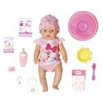 BABY born holčička nedokáže pochopit, proč už musí jít do postýlky. Venku je ještě přece světlo. Maminka a tatínek ale mají skvělý trik: stačí v pusince otočit dudlíkem a BABY born se zavřou oči. Kéž by to bylo tak jednoduché s každým miminkem&hellip Otočení dudlíku panence otvírá a zavírá oči, ať je tělo panenky v jakékoli poloze. Oči panenky jsou zároveň i mrkací. Když se panenka položí na záda a nemá v pusince dudlík, automaticky se jí oči zavřou. BABY born ze všeho nejraději spí, jí a koupe se. Moc ráda pije vodu ze své lahvičky. Potom se vyčůrá do plenky anebo do nočníku a roní opravdové panenkovské slzy. Stejně jako může BABY born pít vodu, může jíst i kaši. Umí dokonce i kakat. Ruce, nohy a hlava panenky jsou snadno pohyblivé, takže převlékaní oblečků je hračka a skvělá zábava. Tělíčko panenky z materiálu "Soft Touch" je krásně měkké a příjemné. Součástí balení je 10 doplňků, které podporují funkce panenky, růžové body a čepička.