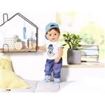 To je ale rošťák! Starší bratříček BABY born už zase své sestřičce ukradl kartáč na vlasy. A to má na své rozcuchané vlásky vlastní hřeben. Kdo by ale odolal jeho uličnickému výrazu a nezbednému pohledu? Chlapeček má tělíčko z příjemného "Soft Touch" materiálu a je pořád v pohybu. Má nožky s ohebnými koleny a nosí moderní tenisky, které ho odnesou všude tam, kam zrovna potřebuje. Zastaví se jen, když má žízeň a chce se napít ze své lahvičky. Ze všeho nejradši nosí džíny a bílé tričko s obrázkem pejska Bella. Jako správný rošťák nosí kšiltovku kšiltem dozadu. Přesvědčit ho, aby si ji sundal, není vůbec jednoduché. Někdy se kvůli tomu dokonce i rozpláče. Na všechno ale zapomene, hned jak se sejde se svými sourozenci u bazénu. • Panenka Starší bratříček BABY born • Má šest životních funkcí • Rozmanitá "hra na" s panenkou BABY born povzbuzuje představivost a bylo prokázáno, že podporuje vývoj sociálních dovedností a hodnot jako je odpovědnost, komunikace a empatie • Funguje bez baterií Starší bratříček BABY born Soft Touch ve velikosti 43 cm má na sobě tričko, kalhoty, tenisky a kšiltovku. Součástí balení je lahvička, hřeben na vlasy a 2 náramky přátelství – jeden pro malou maminku a jeden pro panenku.